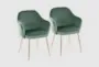 Enhance your dining room with the Lunna Green Upholstered Velvet Dining Chair set. Featuring soft, plush velvet in a rich green hue paired with sleek gold metal legs, these chairs offer both comfort and style. Whether for everyday use or special gatherings, this set of two will bring a contemporary flair to your dining space.