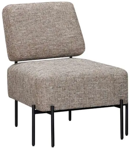 The Pennington accent chair features a modern influenced silhouette with a separate seat and seat back set on a matte black iron frame. The heavily textured walnut fabric is 100% polyester for durability and features deep plush padding.
