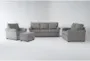 Athos Vintage Grey Fabric 4 Piece Sofa Loveseat Armchair & Storage Ottoman Set | Loose Reversible Back