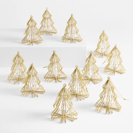 Gold 3D Tree Christmas Ornaments, Set of 12