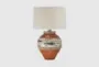 Enhance your bedroom with the 24" Orange Distressed Lizard Animal Southwest Table Lamp. This modern lamp in a striking Indian Brick color features a plaster base adorned with a unique graphic detail and is topped with a white linen shade. Perfect for adding a touch of rustic charm to any space.