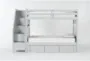 Introducing the Luca grey full over full wood bunk bed with stairway and 3-drawer storage unit, a contemporary piece designed for kids' rooms. This versatile bunk bed is made from solid pine and MDF, ensuring durability and a sleek finish. The full over full size accommodates growing children and provides ample sleeping space.