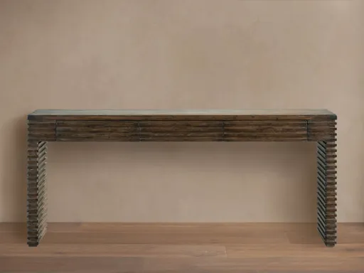 Stunningly textural, our antique-inspired Kai Collection is handcrafted by Chinese artisans from solid reclaimed pine. A slatted design with a hand-stained and distressed Dhurrie Brown finish showcases varying colors, textures, and natural markings, adding truly one-of-a-kind character to each piece.