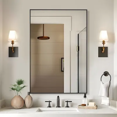 This exquisite mirror is an alluring addition to any home decor. Elevate your living space by placing this stunning mirror above your vanity, dresser, or other large furniture, instantly giving your surroundings a captivating transformation. With its clean lines and smooth surface, this mirror boasts a modern aesthetic, making it suitable for various home decoration scenes.