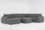 The Isabella II Charcoal 146" 4 Piece Sectional with Left Arm Facing Chaise & Ottoman is a stylish addition to any living room. This modern sectional features a sleek grey fabric that complements contemporary decor. Designed for comfort and versatility, it's perfect for lounging and entertaining.