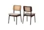 Enhance your dining experience with the Dannon Mid-Century Modern Grey Upholstered & Walnut Brown Wood Dining Chair Set. These armless chairs feature a woven design that adds a touch of sophistication to any dining room or kitchen. The combination of grey upholstery and walnut brown wood creates a stylish and comfortable seating option.