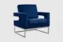 Introducing the Noah Navy Blue Velvet Accent Chair, a perfect addition to your living room. This modern club chair offers comfort and style with its plush velvet upholstery and supportive arms. Designed to be both functional and visually appealing, it seamlessly blends into any contemporary space.