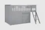 The Kory Grey Twin Wood Low Loft Bed with Bookcase & Dresser combines traditional style with practical functionality. Crafted from durable Asia hardwood, this twin-sized loft bed features a sleek gray finish and a sturdy pine construction. The integrated dresser includes three dovetail drawers with ball bearing glides and two fixed shelves, providing ample storage space.