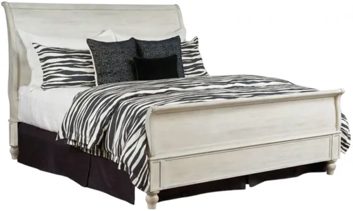 The American Drew® Litchfield Hanover king sleigh bed in the driftwood finish offers a graceful blend of relaxation and quality construction. Clean and flexible with a elegant curved sleigh bed that will work in any bedroom. Also available in king and California king sizes.