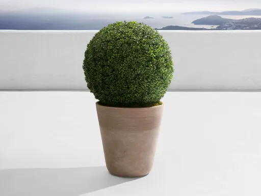 All the beauty of a real boxwood, with none of the grow time or pruning required. Our faux boxwoods are full and plush with pliable, natural-looking shaded leaves that are UV-protected to retain their color in the sun and rain. Each one is nestled inside a fitted resin planter made to complement the greenery’s individual shades.