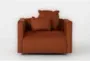 The Tao Burnt Sienna Orange Velvet 45" Swivel Arm Chair brings a touch of modern style to your living room. Upholstered in luxurious burnt sienna velvet, this chair offers both comfort and flair. The swivel feature adds versatility, making it a perfect addition to any space.