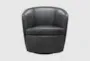 Introducing the Santiago Slate Grey Leather Swivel Barrel Club Chair, a perfect blend of modern style and firm comfort. Crafted from 100% genuine leather, this chair features a vintage slate color that adds a touch of sophistication to any room. Its round shape and swivel design make it a versatile and stylish addition to your living space.