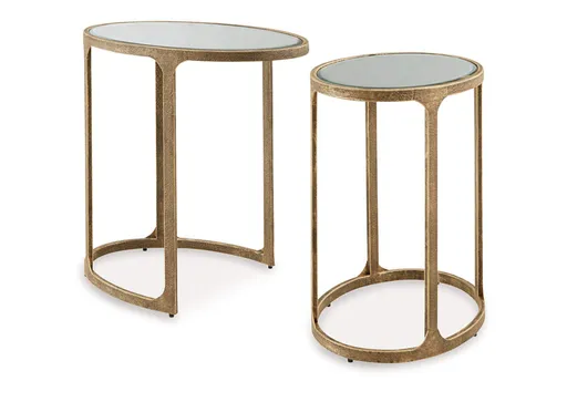 Looking to add a touch of traditional style to your space? You’ll delight in the classic appeal of the Irmaleigh accent table set. Mirrored tabletops, supported by antiqued goldtone bases, bring light, dimension and glam character. A nesting design allows you to stage the tables solo or tuck them neatly together.
