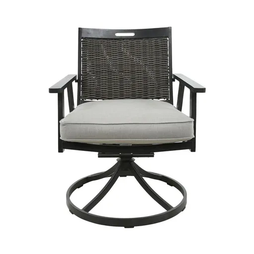 The Arrison Swivel Arm Chair is the unique way to sit while dining. In a modern style, made in gray, it is constructed with aluminum hand woven wicker and features a velcro- tied, polyester performance fabric cushion to enjoy comfortable seating. You can also spin around freely on this chair in a 360-degree swivel. This chair is also water resistant which is very convenient and proves the piece's durability.