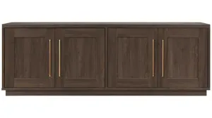 Combine functionality and classic transitional design with the modern Smith TV Stand. Its rich wood tone creates a warm neutral palette that will blend seamlessly into any color scheme, while its classic styling pairs perfectly with the existing design inspiration of your living room, den, or game room. This solid-backed stand features two large enclosed cabinets with sleek brass-finished hardware. Cable management cut-outs and adjustable inner shelves help keep your media storage and consoles organized.