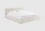 The Zaria Cream King Jacquard Pattern Upholstered Platform Bed is a stunning addition to any modern bedroom. Its elegant cream color and luxurious fabric make it a standout piece that exudes sophistication. Designed for comfort and style, this bed features a soft, plush headboard and rounded rails and footboard.