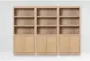Enhance your living space with the Voyage Natural 74" 2 Door Storage Bookcase Set Of 3 by Nate Berkus + Jeremiah Brent. This modern bookcase set, crafted from cathedral oak, combines functionality and style. Perfect for any office or living room, its versatile design and adjustable shelves make it a practical addition to your home.