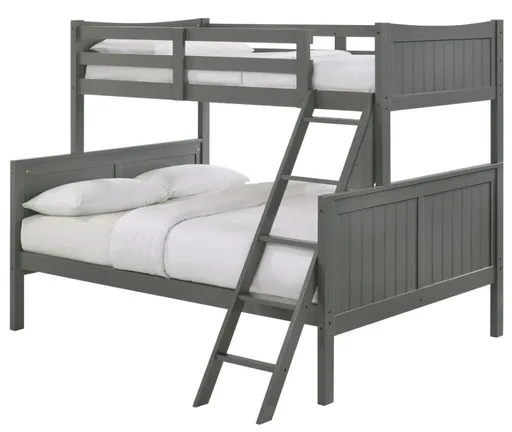 Transform your child's bedroom with Sami twin over full bunk bed. Crafted in and finished in a rich gray. Featuring clean lines and a built-in stepladder. This bunk bed is a space saver, leaving plenty of room for other décor and furniture. Sturdy, stylish, and safe the Sami Bunk Bed is the perfect transitional piece to add to your child's space.