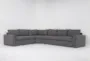 Introducing the Isabella II Charcoal 150" 4 Piece Sectional With Wedge Corner, perfect for your living room. This modern sectional provides ample seating and is upholstered in 100% polyester fabric, ensuring durability and comfort. The reversible orientation allows for versatile arrangement to fit any space.