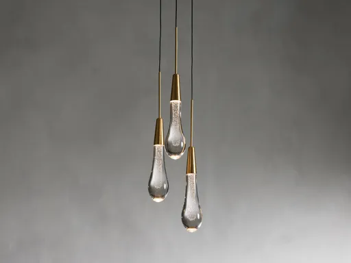 Featuring adjustable black PVC cords cascading into integrated LED lights handcrafted from seeded glass, our Soltaire Lighting Collection mimics the look of a fallen raindrop.