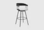 Introducing the Gloria 31" Swivel Black Wood Barstool in Light Grey Fabric with Black Metal, a perfect addition to your modern dining room or kitchen. This barstool combines style and functionality with its sleek design and high-performance fabric. Enjoy the comfort of the cushioned seat and the convenience of the swivel feature.