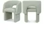 The Bellet Mint Chenille Upholstered Dining Chair brings a touch of modern style to your dining room or kitchen. Its swoop arms and recessed armrests offer both comfort and support, while the mint color adds a soft, inviting feel to your space. Constructed with chenille fabric, eucalyptus wood, plywood, iron, and foam, this chair combines durability with a contemporary look.