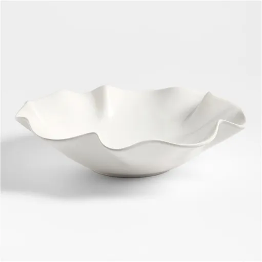 Freeform waves of ruffles and folds in high-gloss white earthenware make a big impression at the table or buffet. Use this serving bowl to serve fresh fruit, festive snack mix or hearty grain salads.
