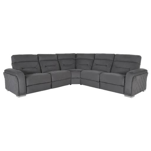 There's plenty of room for the whole family to stretch out and relax on the Kim Gray Power Reclining Sectional with 5PCS/2PWR. Made with performance fabric, this modular sofa features power in the left and right recliners. It also features deep, wide seating and stylish contrast stitching.
