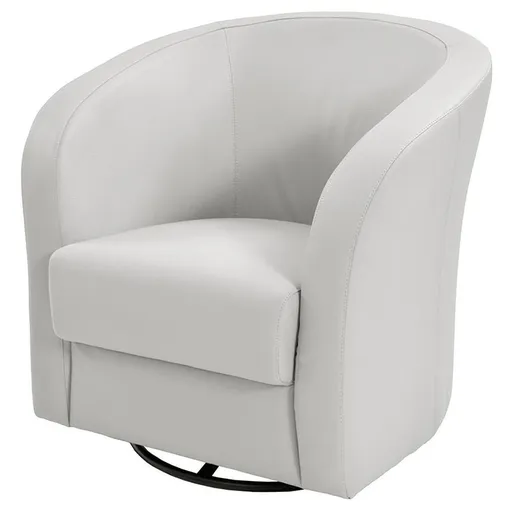 The Delia White Accent Chair brings a modern design to your living room. Solid hardwood construction is supported by a metal swiveling base, while the high density foam padded in alabaster white leatherette makes this chair the undeniable choice for comfort in any room in the house.