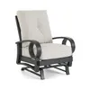 The Eclipse Cushion Seating collection by Mallin is one of our more premium collections featuring a bold design, high-back seating, and ultra-plush cushions in outdoor patio furniture. This spring club chair has an extruded aluminum frame with cast aluminum accents that have weather-resistant features such as a UV-resistant and premium hand-applied antique finish, protected with a clear topcoat. The spring club chairs have a fully welded and aluminum braced frame with a back-slat design and graceful, circular arms. The spring motion in the chairs allows them to rock and bounce lightly. Settle into the ultra-plush, high-back Sunbrella® cushions that are included with this chair, set upon PVC sling seat suspension, and relax in comfort.