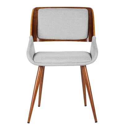 The Armen Living Panda mid-century dining chair is a great way to bring the comforts of yesteryear into your modern life. The sleek design of this contemporary marvel combines a softly curved hardwood walnut frame with an elegantly padded back. The seat is wide and accommodating as well, making this side chair a wonderful comfort piece for the living or dining room. The plush medium firm density cushion seat and back will provide you with all day comfort. The medium high open lower back is ideal for posture alignment and an unmatched support for days on end. The box style with walnut accent along the exterior of the chair is both unique and eye catching any where in your home. The foundation of the product is supported by solid walnut wood and metal for a sturdy and stylish aesthetic without comprising practicality and functionality of this item. This product ships in one box with easy and quick set up.