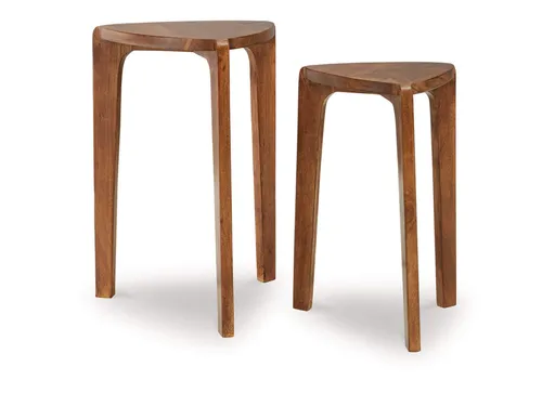 The Brynnleigh accent table set brings beautiful versatility to your contemporary living room. Stage the tables as a nesting pair to create the look of a dynamically layered coffee table. Place next to your favorite sofa or chair to keep sofa-side essentials within reach. With a simple design that highlights the beauty of their wooden construction, this set provides you with elevated style and everyday function.