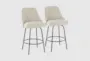Enhance your dining experience with the Marcie 27" Counter Height Stool with Swivel in black metal and cream fabric. Perfect for any contemporary dining room, this set of 2 stools features a comfortable swivel design and a stylish brass nailhead trim. The round black metal footrest adds both function and style, making these stools a great addition to your dining or kitchen space.