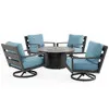 Montecito Charcoal Aluminum with Cushions 5 Piece Swivel Chat Set 48 in D Sintered Fire Pit Table