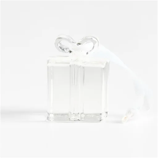 Evoking ice sculptures, our clear glass Christmas ornaments shine on the tree. Talented artisans blow each one by hand, transforming durable borosilicate glass into a classic beribboned present (that only appears to be delicate). The look is minimalist and modern with the perfect touch of icy charm—especially paired with the coordinating reindeer- and nutcracker-shaped ornaments.