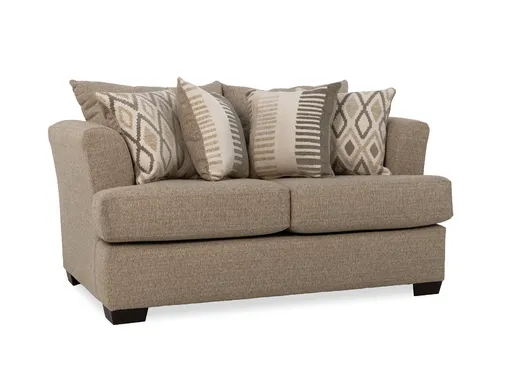 The Oaklynn Loveseat offers cozy seating with a clean, transitional look that complements a wide range of living spaces. Upholstered in a soft oatmeal-colored fabric, this stationary loveseat features gently curved arms that subtly angle outward, adding a relaxed touch to its classic silhouette. Plush pillow backs and thick seat cushions provide supportive comfort, making it perfect for everyday lounging or intimate gatherings.