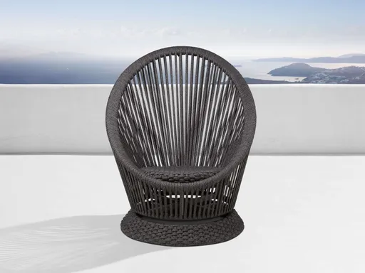 Artisan-crafted all-weather accent seating - Handwoven by Indonesian artisans, our Sevilla swivel chair is cleverly crafted from durable, weather-resistant polyester rope. Meticulously designed with intricate yarns to enhance performance and durability, this rope is woven onto rustproof aluminum frames to create stunning, vertical, linear patterns that will add texture and interest to your outdoor gathering space. Plus, no cushions needed—this unique outdoor accent chair is also extra comfortable all on its own.