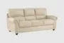 The Sidney Cream White 84" Leather Sofa brings a touch of traditional charm to your living room. Upholstered in 100% top grain leather, this sofa offers both durability and comfort. The rolled arms and nailhead accents add a sophisticated detail to its design.