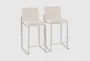 Enhance your dining or kitchen space with the Ian Beige Metal Performance Fabric High Back 26" Counter Height Stool Set of 2. These modern, armless stools provide a sleek and comfortable seating option with their tall design and soft cushion. The neutral beige polyester fabric paired with painted steel legs offers a stylish and durable addition to any setting.