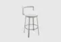 Introducing the North 26" Swivel Metal Counter or Barstool in Cloud Finish with White Faux Leather. This modern, armless stool is perfect for your dining room or kitchen, offering both style and functionality. The swivel design allows for easy movement, while the faux leather upholstery provides a comfortable seating experience.