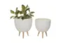 Great additions to gardens, patios, and outdoor spaces with a modern and contemporary theme. This item ships in 1 carton. Please note that this item is for decorative use only. Suitable for indoor and outdoor use. This item ships fully assembled in one piece. Maximum weight limit is 5 lbs. Pots do not have drainage holes. This white colored plant pot comes as a set of 2. Contemporary style.