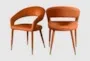 The Nena Cognac Velvet Dining Chair with Gold Finish is a stunning addition to any modern dining space. Its soft cognac velvet upholstery and contemporary design make it both stylish and comfortable. The chair's rounded back and upholstered legs with gold tips add a touch of mid-century modern flair.