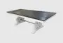 Introducing the Morelle White/Espresso Wood Rectangular Trestle Dining Table, a stunning addition to your dining room or kitchen. This table features a pedestal base and is crafted from mahogany and mindi wood, offering both durability and style. The European Cottage color adds a touch of charm to any space.
