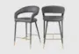 The Nena Grey Vegan Leather Upholstered 37.5" Counterstool Chair with Gold Finish is a stylish and modern addition to any home. Its soft grey vegan leather and rounded back provide both comfort and elegance. The gold-tipped legs add a touch of sophistication, making it a perfect fit for contemporary and mid-century modern interiors.