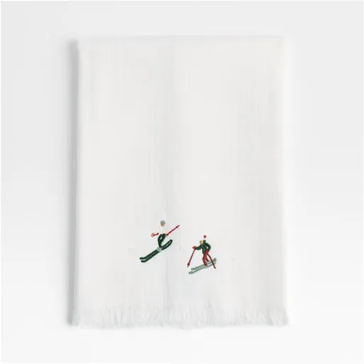 A pair of skiers make a run down this set of charming winter-themed guest towels. Embroidered in bright colors, the tiny figures contrast with the snow-white, terrycloth backdrop. Stylish-yet-whimsical, this festive hand towels are sure to delight family and friends.
