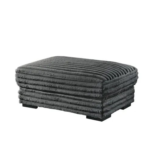 The Embrace Ottoman in charcoal gray is the perfect addition to your living space, offering both style and functionality. Crafted from 100% charcoal gray polyester fabric with a plush, blanket-like texture, it promises ultimate relaxation. This versatile piece can be used as a footstool or extra seating, thanks to its high-density, resilient foam cushions that provide a supportive and comfortable feel. The durable frame, made from a combination of solid and manufactured woods, ensures long-lasting quality. The luxurious ribbed channel fabric adds an elegant touch, making the Embrace ottoman a seamless fit with the rest of the collection, inviting you to lounge and unwind in style.