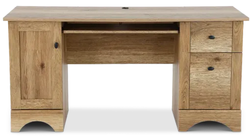 This computer desk with drawers from the Orion collection is the perfect work-from-home solution. With style and function plentiful, this home office desk features a slide-out keyboard/mouse shelf with metal runners and safety stops to keep the surface workspace clutter-free. As a double pedestal desk, one side features two easy-gliding drawers. The top drawer provides storage space for pens, paperclips, note pads, envelopes, and more. The lower drawer is a filing cabinet which can hold letter or European-sized hanging files, allowing your most important documents to be organized and easy to find. The opposite pedestal of this computer desk provides space behind the door, which can hold a vertical CPU tower, and includes an adjustable shelf to customize your storage to your size and space preferences.