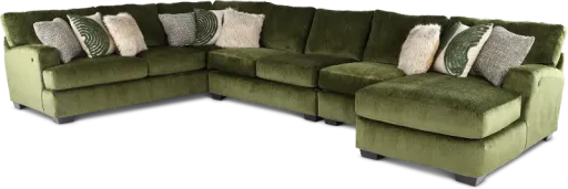 Add stylish, livable design to your home with the Pine collection! This 4-piece sectional offers a simple and chic silhouette covered in a richly hued green velvet chenille fabric. Handy USB-C ports are located on the exterior sides of each armrest, making it easy to keep devices fully charged and close at hand. The sectional's generous proportions, luxurious comfort, and universal appeal are ideal for gathering spaces, while 9 included toss pillows further enhance its inviting feel. Includes XL left-facing sofa, armless loveseat, armless chair, and right-facing chaise.