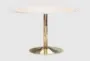 The Sanders White 50" Round Marble Pedestal Dining Table is an ideal centerpiece for your dining room or kitchen. The natural marble top offers a sophisticated touch, while the sturdy brass pedestal base ensures stability. Perfect for seating four, this table brings modern charm to your dining space.