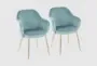 The Lunna Blue Upholstered Velvet Dining Chair in Gold Metal is a stunning addition to any dining room. Featuring a contemporary design, these chairs offer both style and comfort with their plush velvet upholstery and supportive armrests. The gold metal legs provide a striking contrast to the soft blue fabric, making these chairs a standout piece.